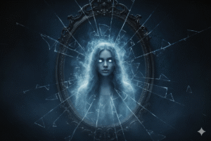 - Cracked mirror ghost reflection, spooky backlight, 4K cinematic realism.